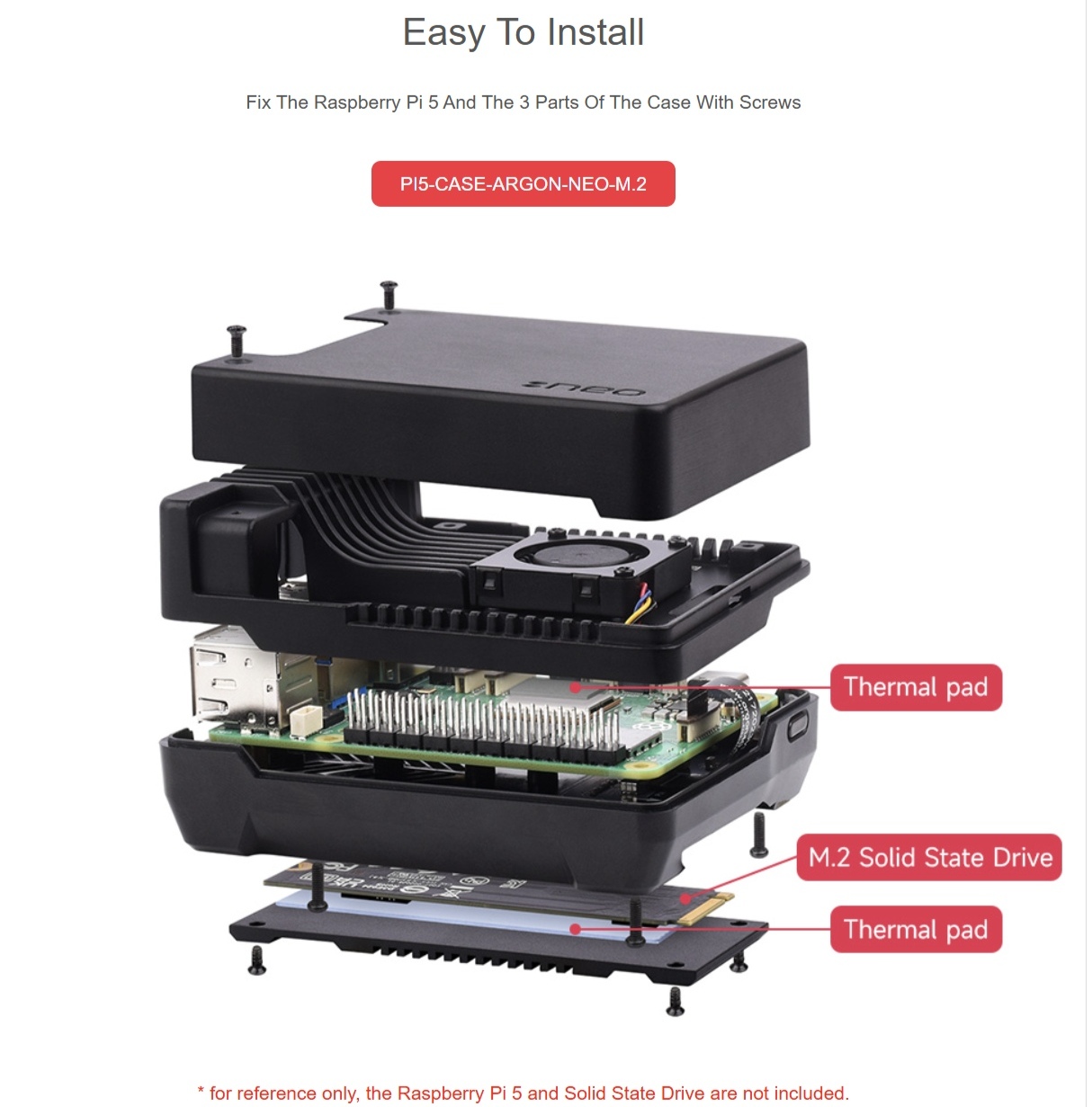 樹莓派 Pi5 專用 ARGON NEO-M.2 鋁合金機殼(內建 PWM 散熱風扇)