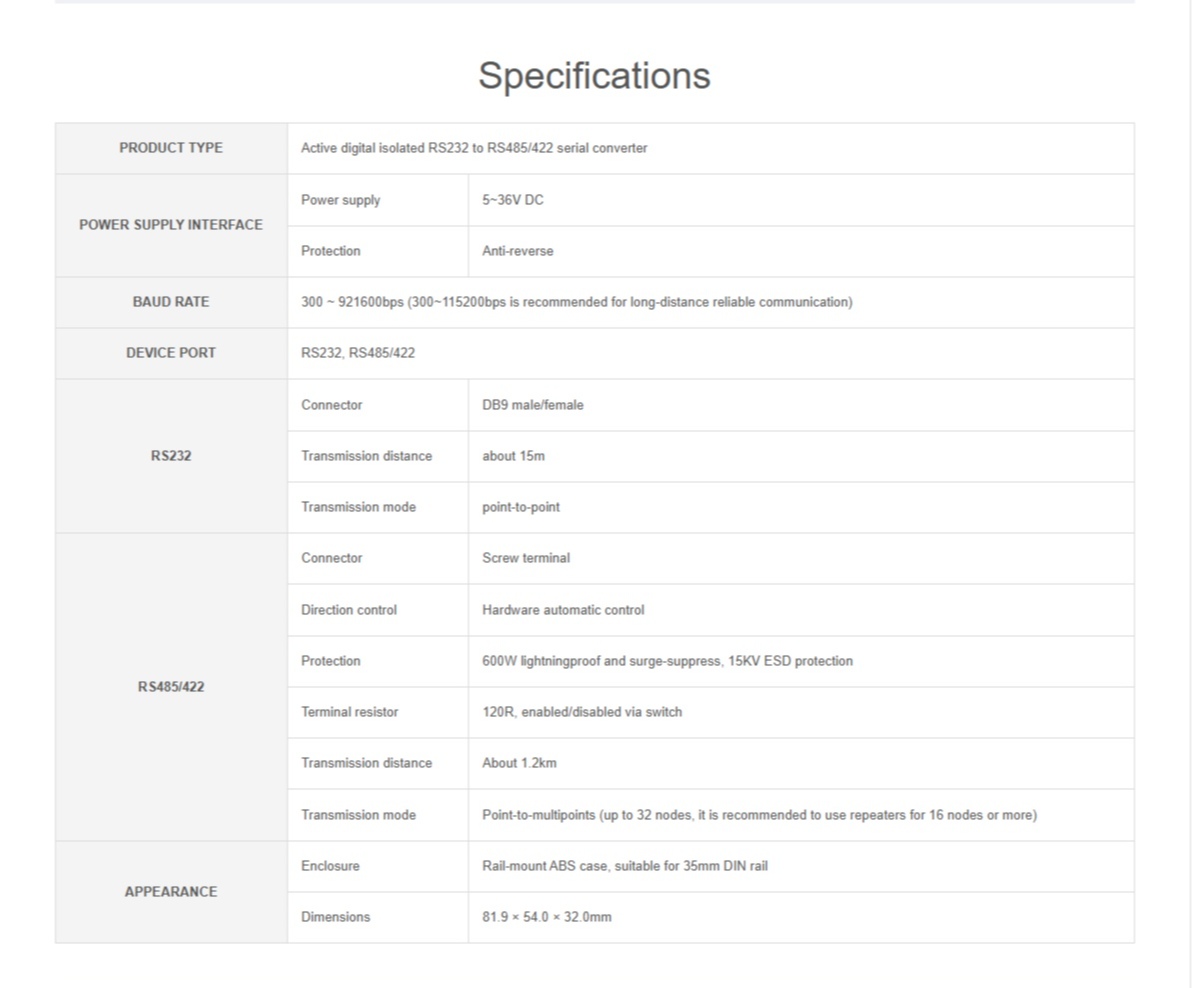 - 商品類型:主動式數位隔離型 RS232 轉 RS485/422 轉換器
