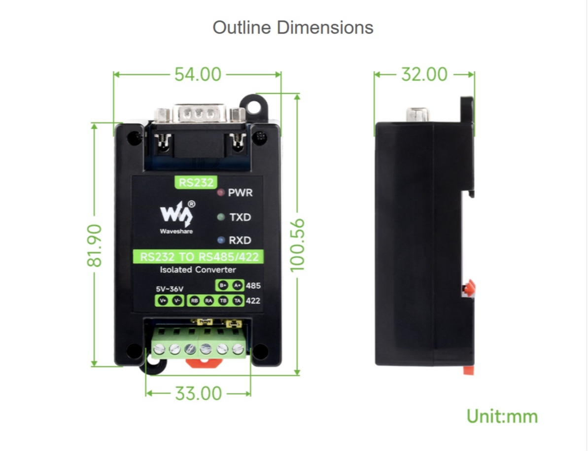 - 工業導軌式 ABS 環保外殼,支援壁掛和導軌安裝,適用於 35mm DIN 導軌,體積小巧,安裝方便,性價比高