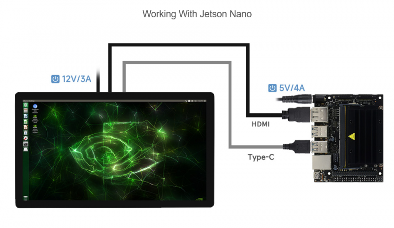 - 連接 Jetson Nano 時,支援 Ubuntu 作業系統,單點觸控,免安裝驅動程式